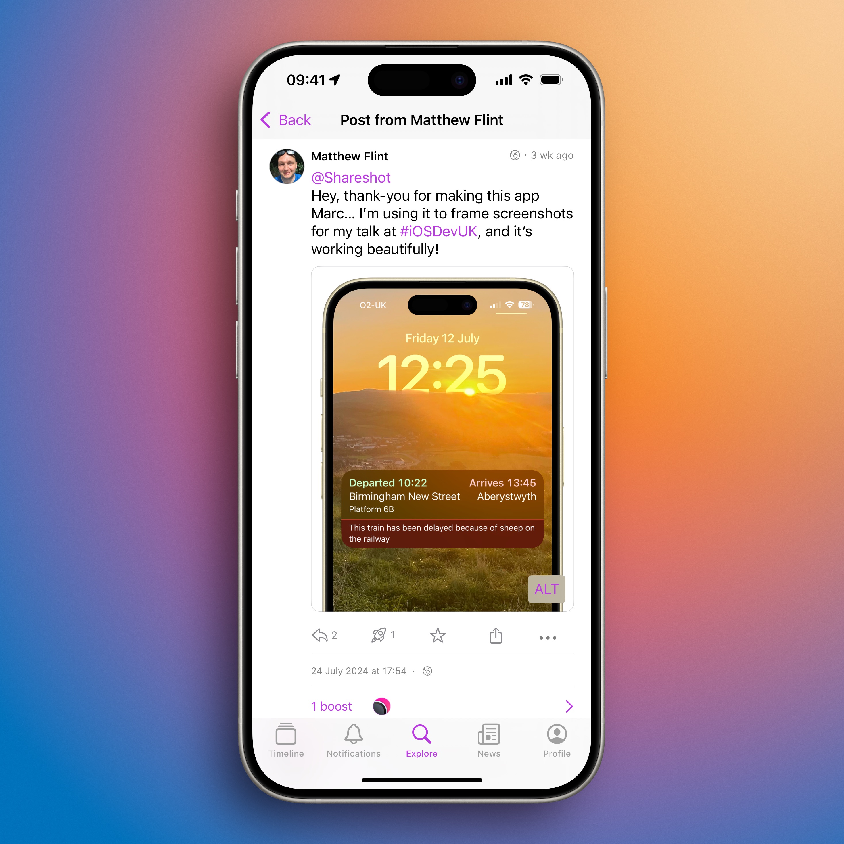 We’re kicking it off with Matthew Flint who came to our attention saying nice things about Shareshot on Mastodon during the Beta period.