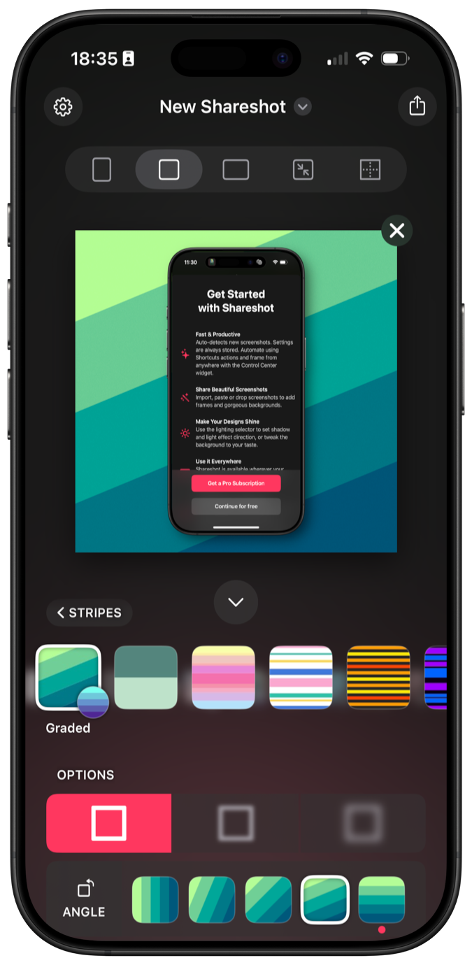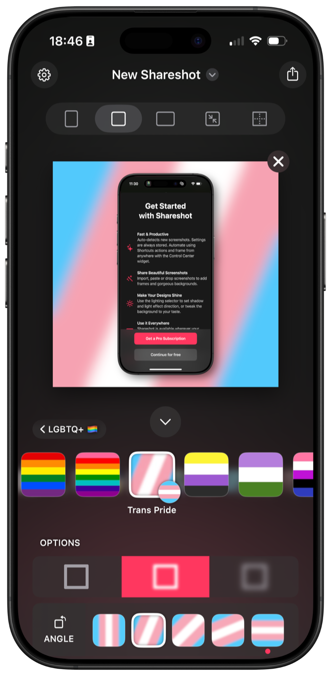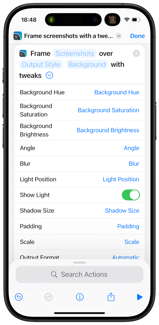 We also added support for the new backgrounds and angle/blur adjustments to the App Intent specially for applying Tweaked Backgrounds.