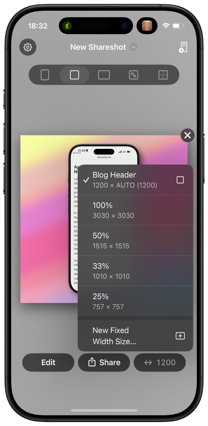 All of our 5 App Intents for Shortcuts now support the Custom Size output mode as well as setting the Scale option to your Fixed Width or Custom Sizes as appropriate for the chosen output mode.